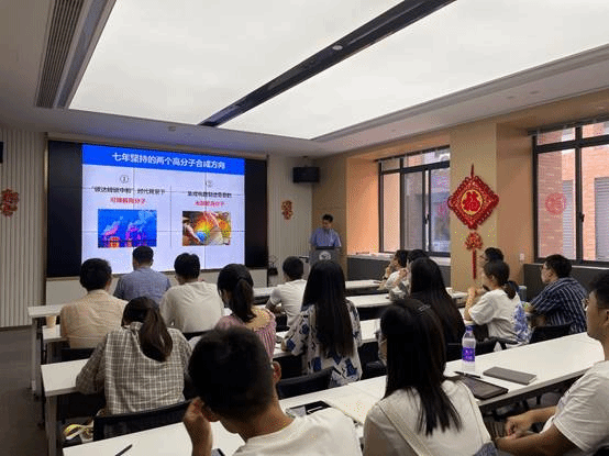 本次报告由院长张先明教授主持,糖心vlog多位教师以及研究生共同参会并交流。会上,伍广朋研究员针对模块化有机硼氮催化体系及二氧化碳化学转化、可降解高分子材料、光刻胶等方面相关研究展开了全面的介绍。会后,与会人员与伍广朋研究员进行了积极深入交流,现场气氛活跃。