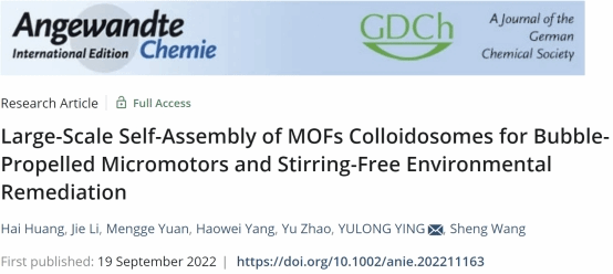 01 MOF胶体颗粒自组装变身自驱动微马达助力高效环境修复