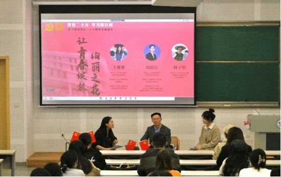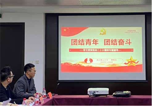 分党校入党积极分子培训班、预备党员培训班学员,以“立志做有理想、敢担当、能吃苦、肯奋斗的新时代好青年”为主题进行党的二十大精神主题宣讲,教育和引导同学们自觉主动深入学习践行党的二十大精神,努力提高政治素质和理论素养,树立远大理想、坚定信仰信念、争做时代新人。11月10日,周照东走进艺术与设计学院,面向学院党员骨干,开展以“让青春绽放绚丽之花”为主题的专题宣讲,宣讲以专题沙龙形式开展,由授课演讲改为交流访谈,不仅增强了老师与学生之间的互动,也加深了大学生青年对二十大精神的理解,增强了共鸣,激发了他们在新时代奋进的热情和担当意识,将饱满的激情投入党的二十大精神的学习,助力推进中华民族伟大复兴。