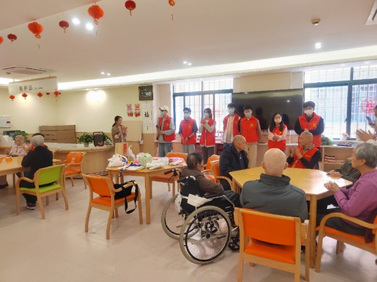 春日阳光映衬下,在干净整洁的活动室内,青年学子和老人们一起做动感的手部健身操,随后与老人们围坐桌前,大学生们化身“中华小曲库”,为老人们献唱,他们与老人们合唱《歌唱祖国》《明天会更好》等歌曲,老人们一边打节奏,一边跟唱经典红歌,优美的歌声在大厅里回荡。“好久都没有和这么多年轻人在一起热闹过了,感谢他们,希望他们今后能常来。”一位老人说到。