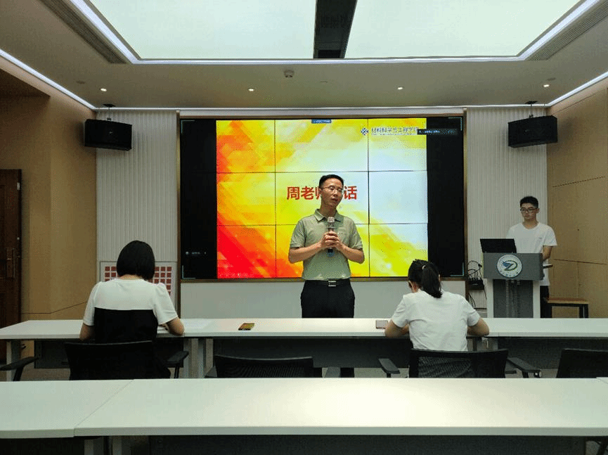 周照东老师首先进行了一个简短的发言,希望同学们能够深入挖掘实践特色,与学院特色相结合,确保实践内容有深度、有意义、有体会并在随后为各实践队授旗。