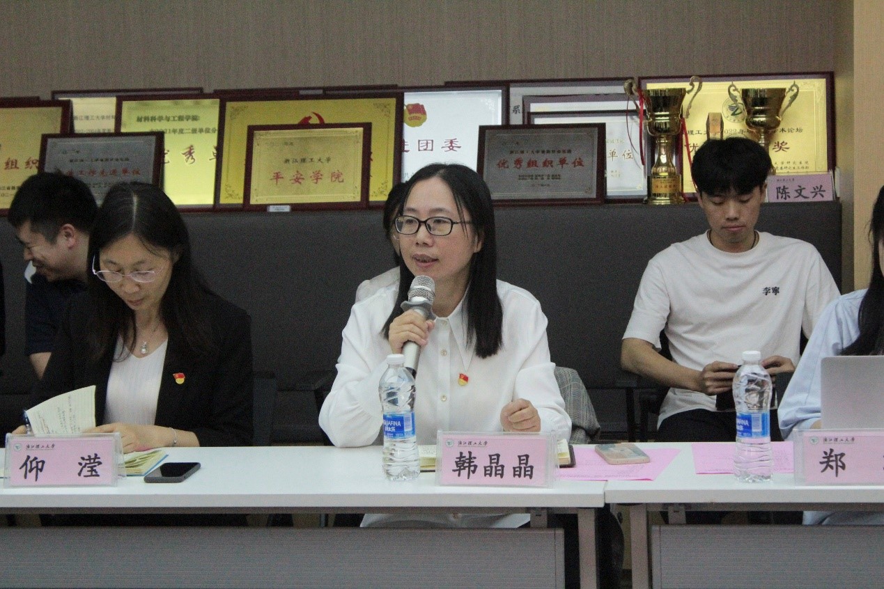 研究生材料科学与工程第一党支部书记王依琳汇报了支部“书记领航”工程进展情况。学院党委紧扣学院中心工作实施2023年度党支部书记“书记领航”工程,围绕学院事业发展不同方面启动13个工程,由支部书记领衔负责。研究生材料科学与工程第一党支部认领的“书记领航”工程是:打造理论宣讲“微课堂”,培育浙江省高校微党课大赛选手,下一步将继续调动支部党员的积极性、主动性,让理论宣讲赋能,确保支部党建工作落地落细。