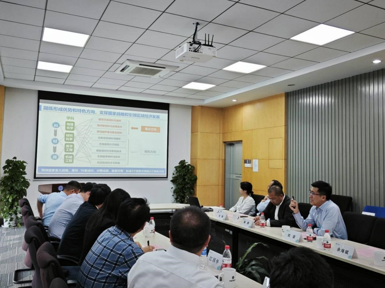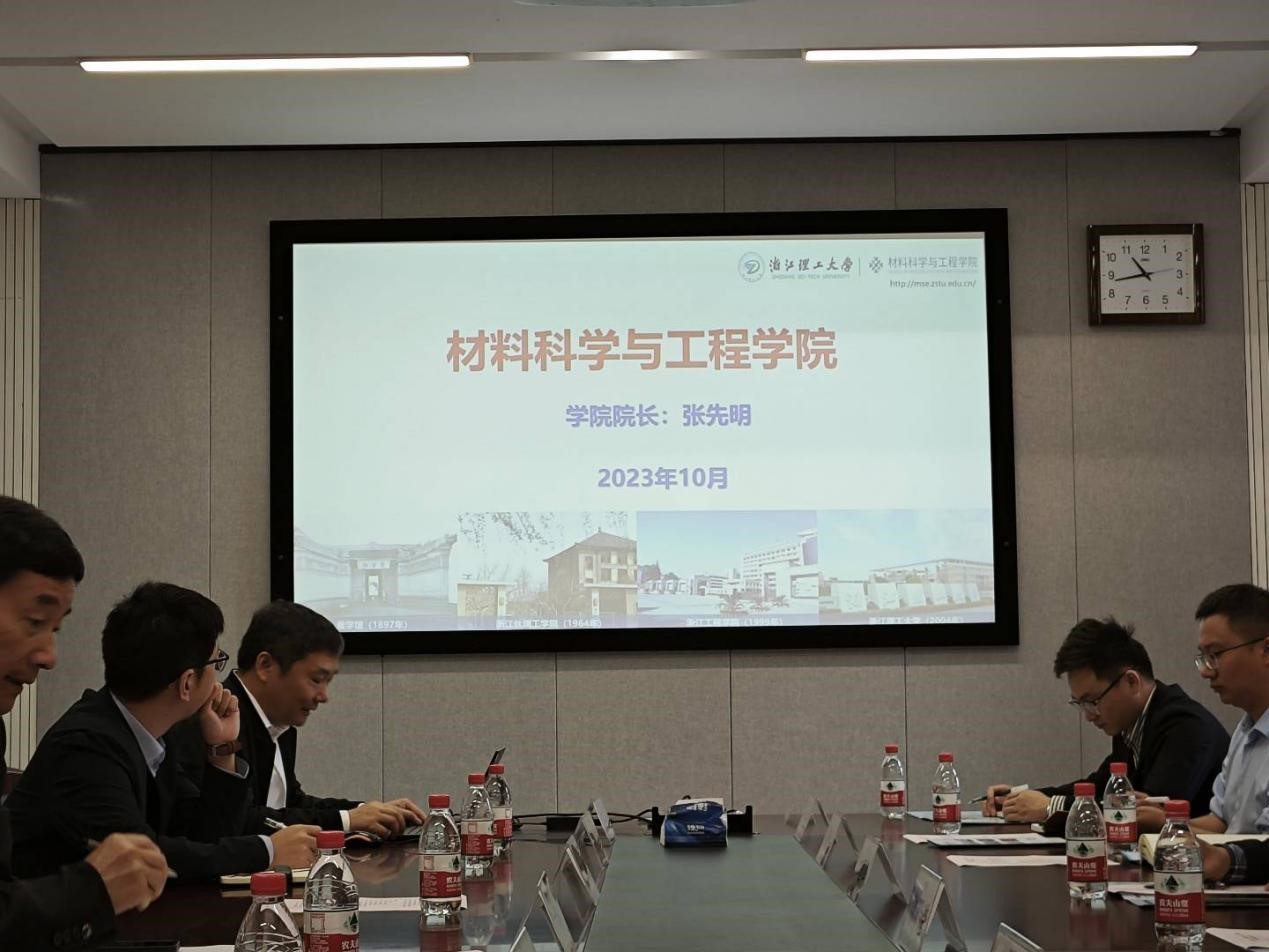 在宁波大学材料科学与化学工程学院,学院特聘院长丁传凡、党委书记陶娟等热情接待学院党政班子一行。丁传凡院长详细介绍了学院的学科建设、有组织的科研、人才培养等方面情况,材料学院院长张先明围绕学院的发展历史、学科建设、人才培养、社会服务等方面做了介绍。双方就学院的人才引进工作、学风建设情况、学生干部队伍培养等进行了进一步交流。
