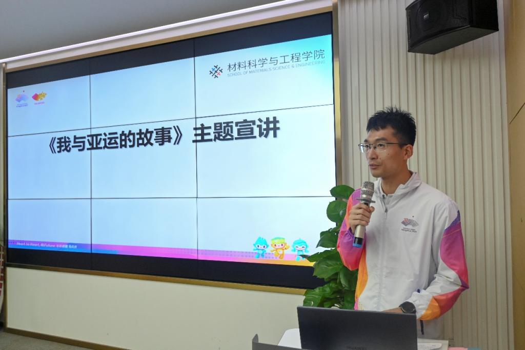王旭生、应玉龙、查博文、薛林昊四位师生代表作为宣讲团首批宣讲成员分别进行以“我与亚运故事”主题宣讲,分享他们亚运会的经历和故事。