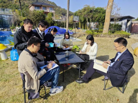 团队首先赴德清县下渚湖进行乡村振兴考察调研,参观了德清县下渚湖乡村振兴建设发展成果。通过参观防风氏祠、防风文创基地、防风主题引领乡村建设等,深入学习了德清县下渚湖以党建引领乡村发展,以生态保护为根、以治水文化为魂、以农旅产业为优势的特色发展思路。在聆听了下渚湖在党建引领下对文化传承的保护创新的建设性工作后,大家深刻感受到下渚湖文化核心、乡村振兴的力量是中国人传统的斗争精神、为民精神。学院与德清县下渚湖二都村还就校企地合作模式、党建联建共建、高校助力乡村振兴建设、共建社会实践基地等进行了商讨,学院将立足材料学院自身特色优势,为乡村振兴贡献积极力量。