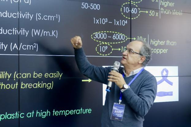 根特大学Mahta Mirzaei教授介绍了生物活性肽制备的具有抗炎活性伤口敷料,南京大学甄叙教授介绍了用于体内长余辉成像的有机半导体纳米粒子,复旦大学黄容琴教授介绍了胶质瘤诊断和治疗的新策略,巴基斯坦科学基金会主席Shahid Mahmood Baig教授介绍了如何使用基因组技术在近交群体中寻找疾病基因,澳大利亚皇家墨尔本理工大学欧建臻教授(线上)介绍了基于氧化钼的高性能生物传感器,阿威罗大学Rui Ramos Ferreirae E Silva教授介绍了碳纳米结构的化学气相沉积方法,信阳师范大学聂磊教授介绍了基于 dECM 的组织再生水凝胶。