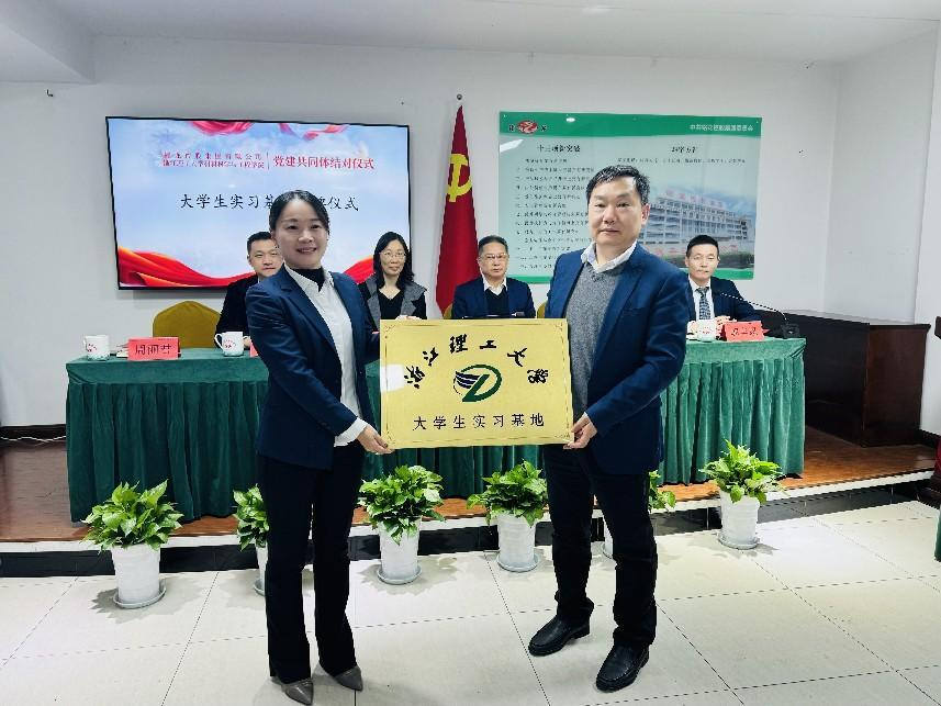 大学生实习基地授牌仪式,张先明向周丽君授牌。