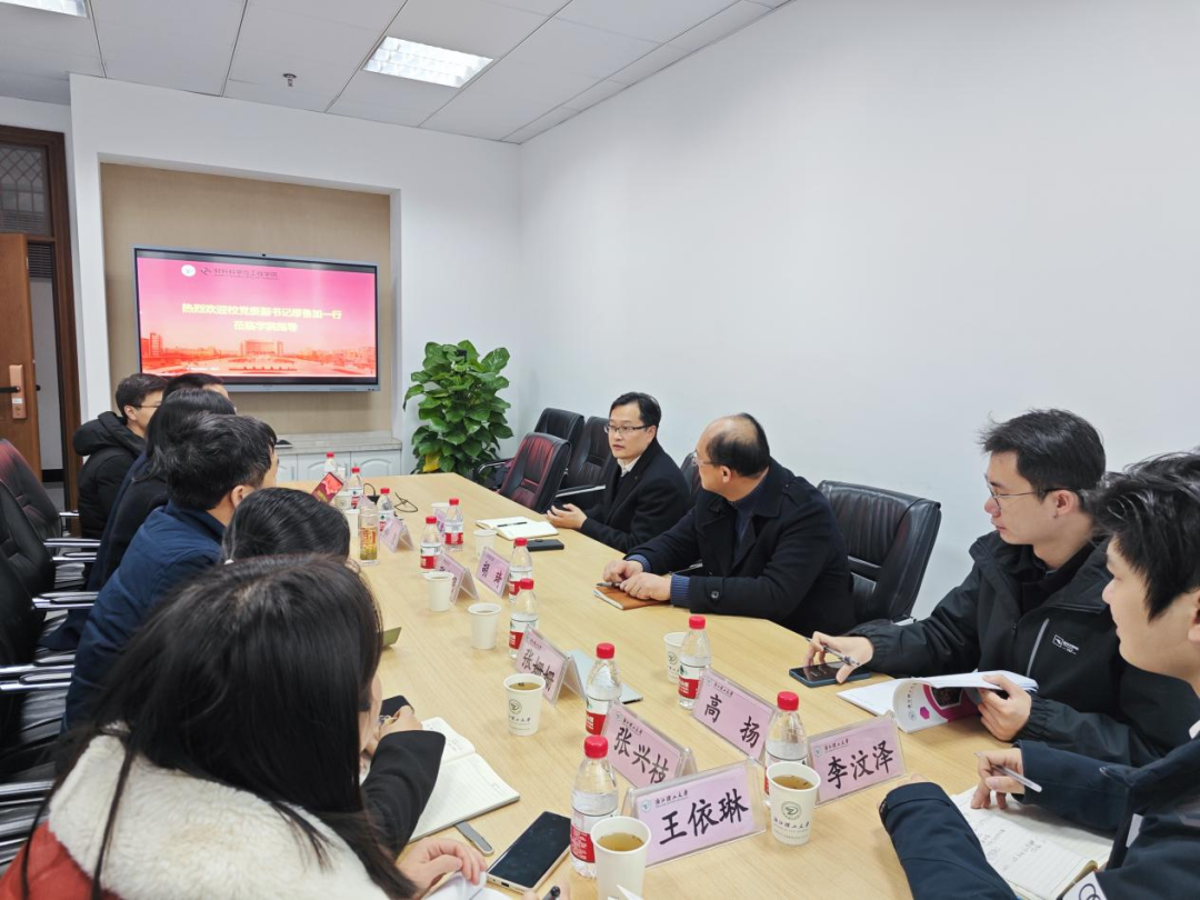 院长张先明介绍了学院师资队伍建设与人才培养情况,表示学院始终将育人工作放在学院事业发展首位,在青年教师队伍培养、导学矛盾化解等工作中始终坚持"以学生为本"理念,采取系列措施,强化帮扶服务,努力提高人才培养质量。