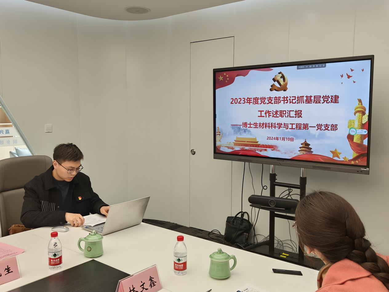 述职会上,高分子材料系教工党支部、本科生高分子材料与工程第一党支部、本科生材料科学与工程第一党支部、研究生材料科学与工程第二党支部、博士生材料科学与工程第一党支部5位党支部书记从党建工作开展情况、“书记领航”工程实施情况、存在的问题和今后努力方向等方面进行了2023年度党支部书记抓基层党建工作述职汇报,交流分享工作经验。学院党委书记仰滢逐一进行点评。