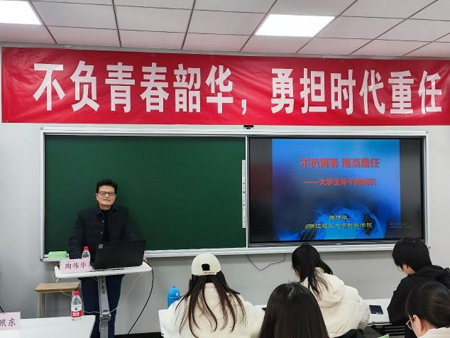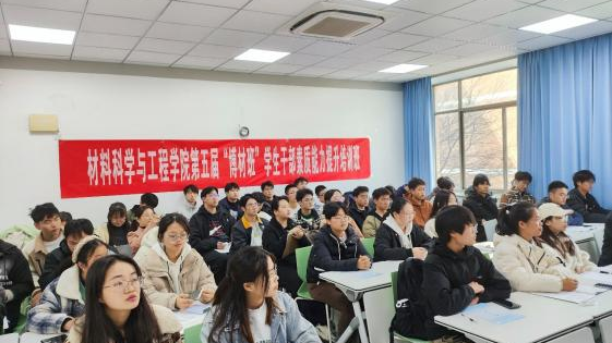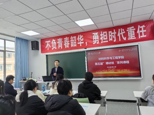 为提升学院学生干部综合素质,培养高质量“材俊”青年,3月13日,材料学院第五届“博材班”系列课程之“大学生骨干的成长”在3S342智慧教室开讲。本次课程由原校党委副书记陶伟华教授讲授,第五届“博材班”全体学员及学院学工办老师等六十余人参加,学院党委副书记、纪委书记周照东主持。