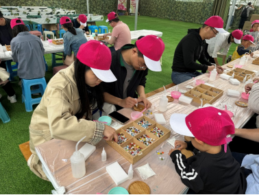 上午抵达农场营地后,老师们首先开始手工DIY活动,自己动手制备马赛克杯垫,用一颗颗玻璃马赛克,按照自己的创意和设计制作了精美的杯垫。中午餐后,在园区大草坪上,老师们围坐在一起围炉煮茶、互相交谈,分享平时工作经历和生活经验,释放平时的工作压力,气氛温馨和谐。下午2点,老师们进入农场果园中,饶有兴致的进行小番茄采摘活动,跳出平日繁忙的工作感受着农作的快乐与休闲。