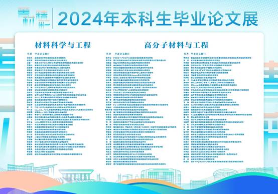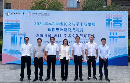 为进一步展示2024届学生科研与学术成果,展现课程育人特色,近日,材料学院在25号楼一楼大厅举行主题为“菁材▪精彩”的本科毕业论文和学术成果展、课程思政建设成果展暨学院第四届“菁材”学术文化节开幕式。学院书记仰滢,副院长江国华、杨叶锋和各系系主任出席开幕式并参观展览。