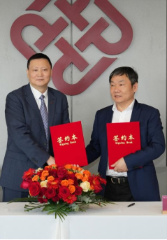 倪一清与张先明代表双方签署合作协议,落笔成约后,双方嘉宾携手登台共同完成揭牌仪式,标志着联合中心正式宣告成立,开启双方合作新篇章。