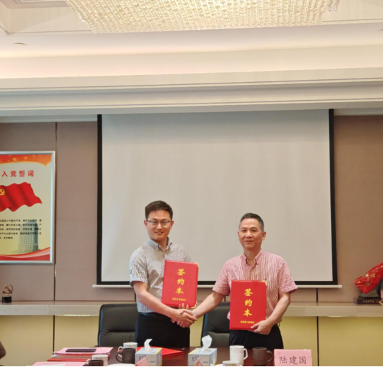 高分子材料系教工党支部书记陈世昌与中共金富春集团有限公司党总支副书记陆建国共同签约。