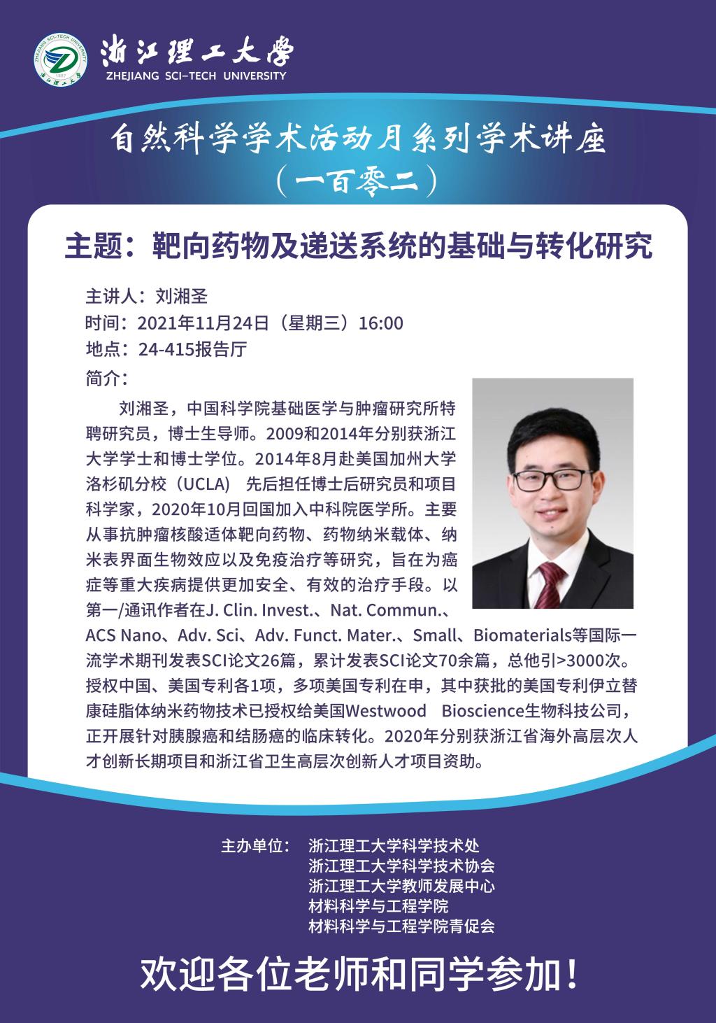 学术讲座【32】:靶向药物及递送系统的基础与转化研究