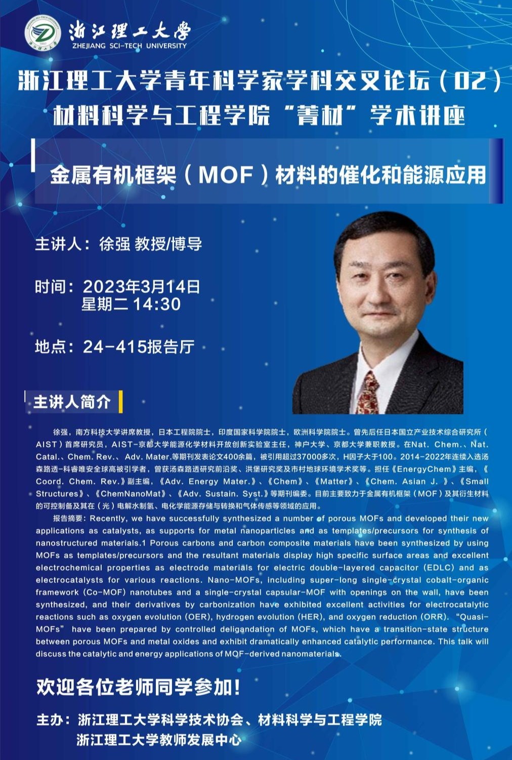 学术讲座【53】:金属有机框架(MOF)材料的催化和能源应用