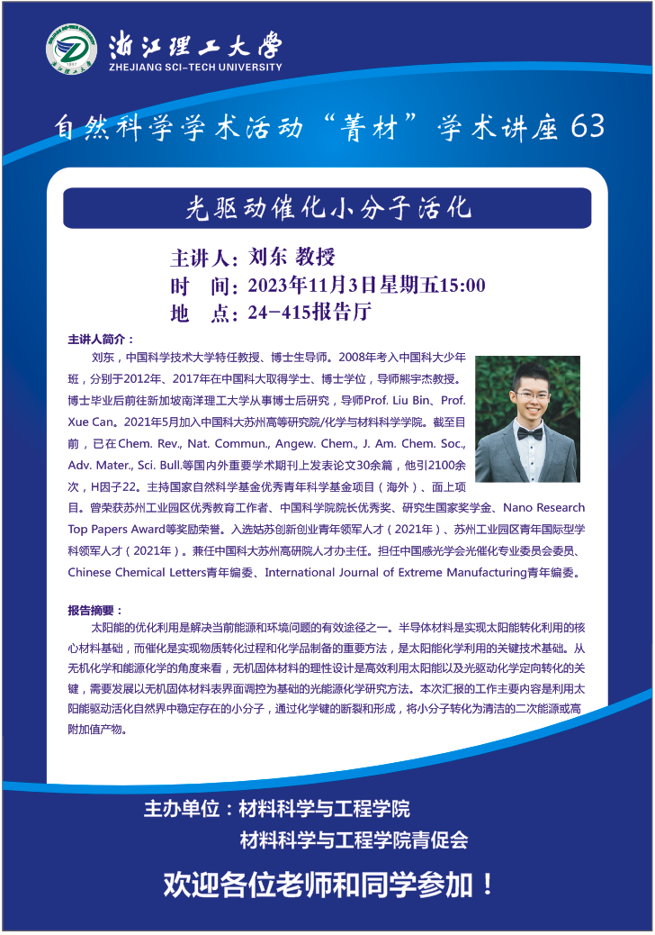 学术讲座【63】:光驱动催化小分子活化