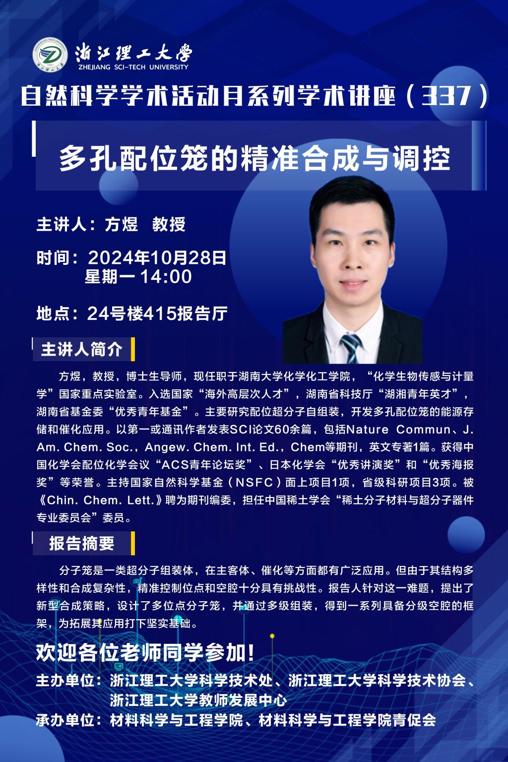 学术讲座【92】:多孔配位笼的精准合成与调控