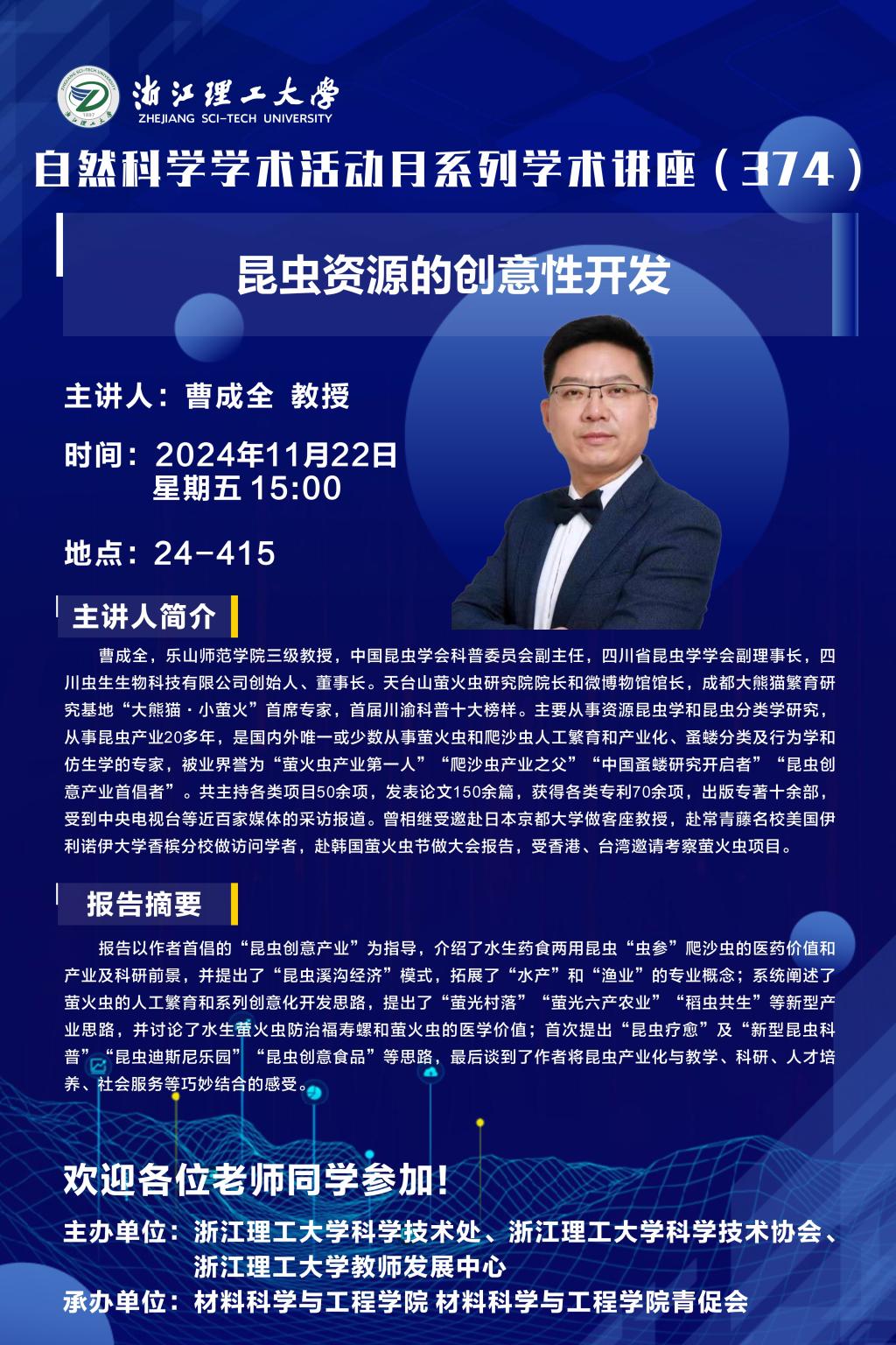 学术讲座【97】:昆虫资源的创意性开发