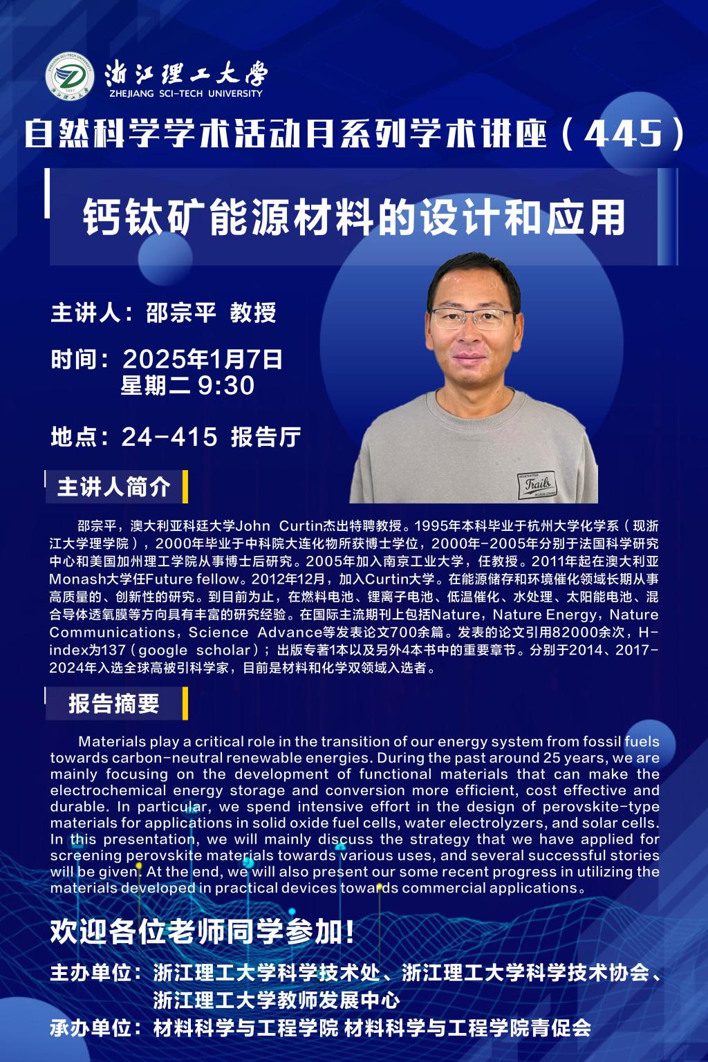 学术讲座【99】:钙钛矿能源材料的设计和应用