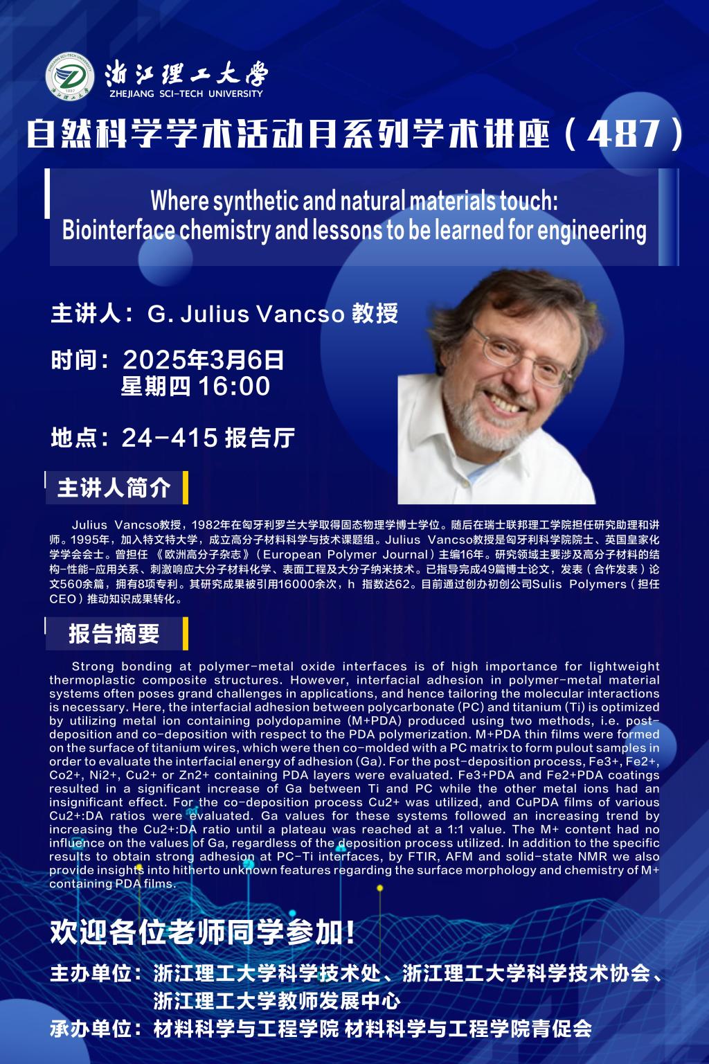 学术讲座 当前位置: 首页 > 学术讲座 > 正文 学术讲座【105】:Where synthetic and natural materials touch: Biointerface chemistry and lessons to be learned for engineering 作者:时间:2025-03-03浏览次数: