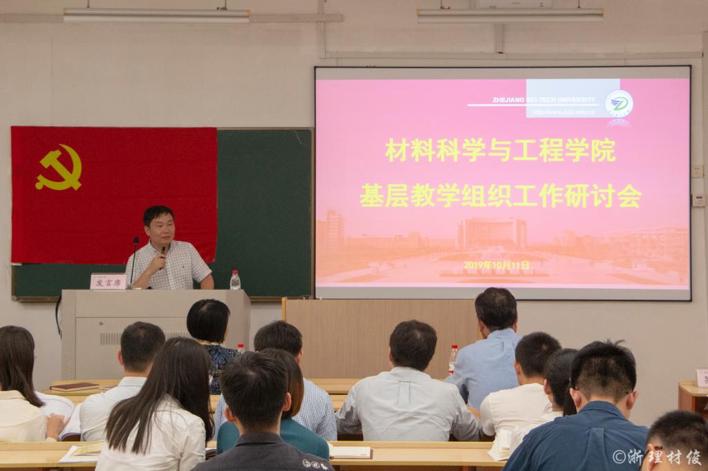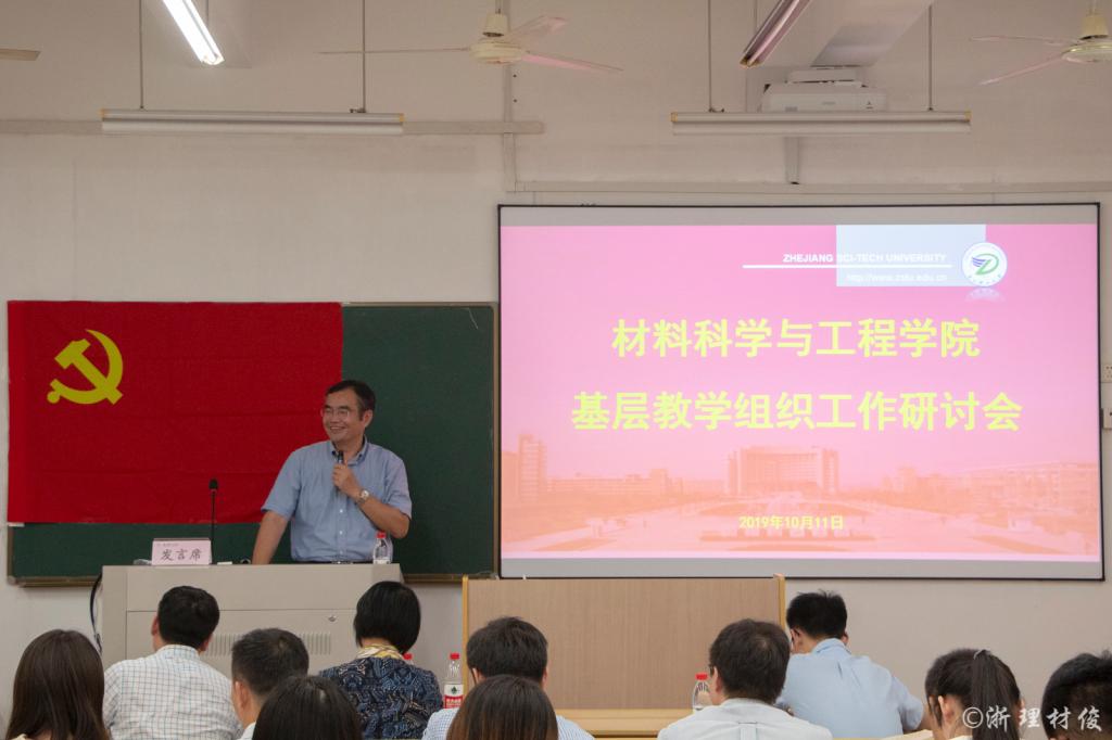 2019年10月11日下午,材料科学与工程学院召开基层教学组织工作研讨会。研讨会由学院副院长张先明教授主持,学院党政领导班子及全体党员教师出席会议。学院邀请教务处副处长楼盛华、朱慧到会指导基层教学组织建设和精品课程规划等内容。